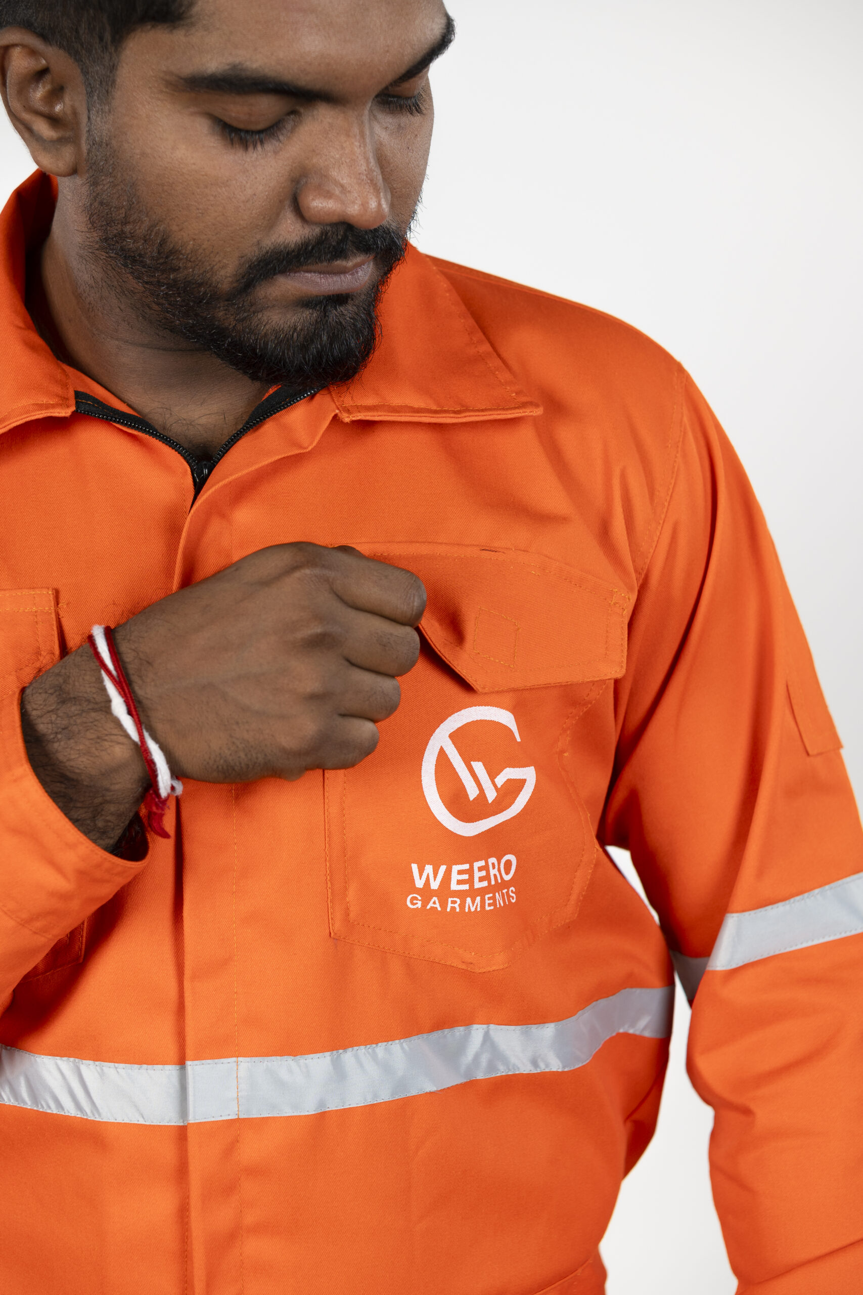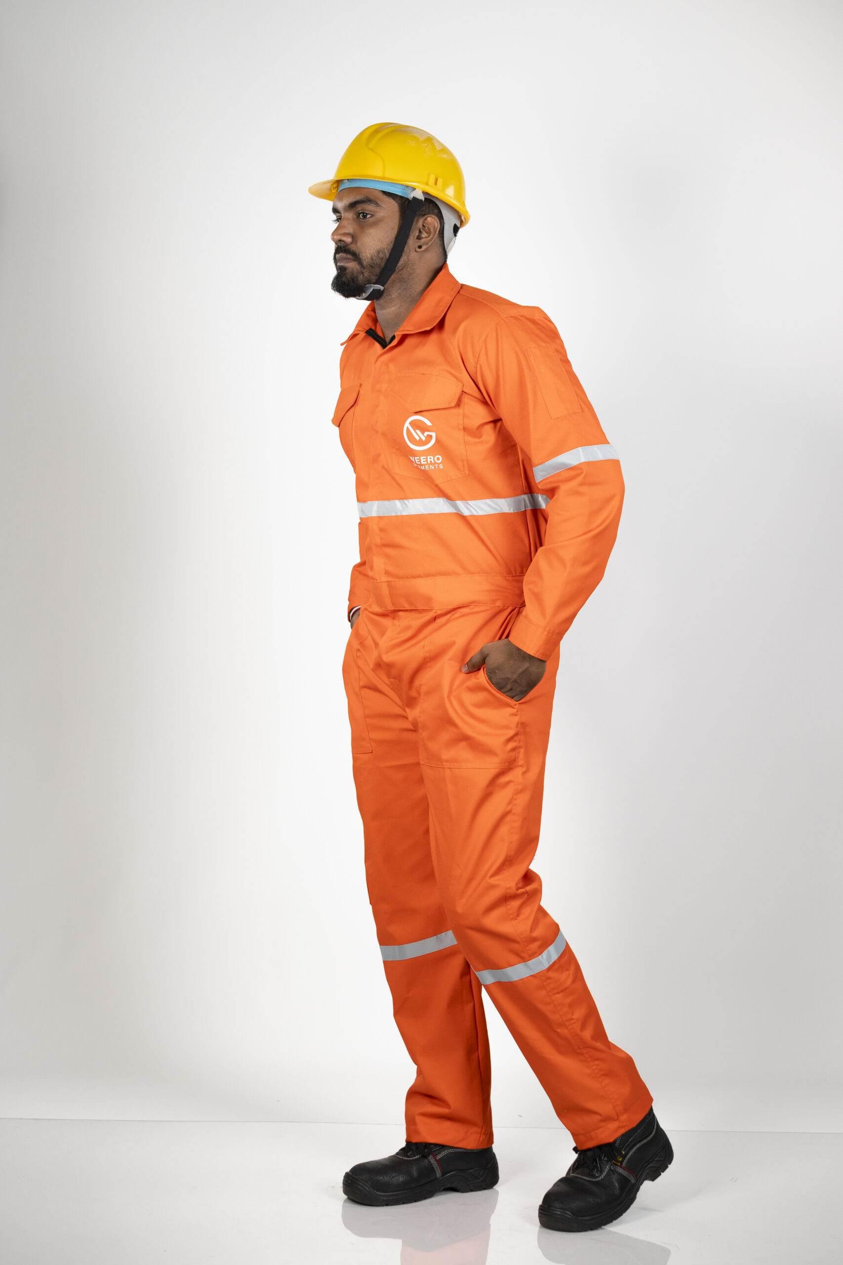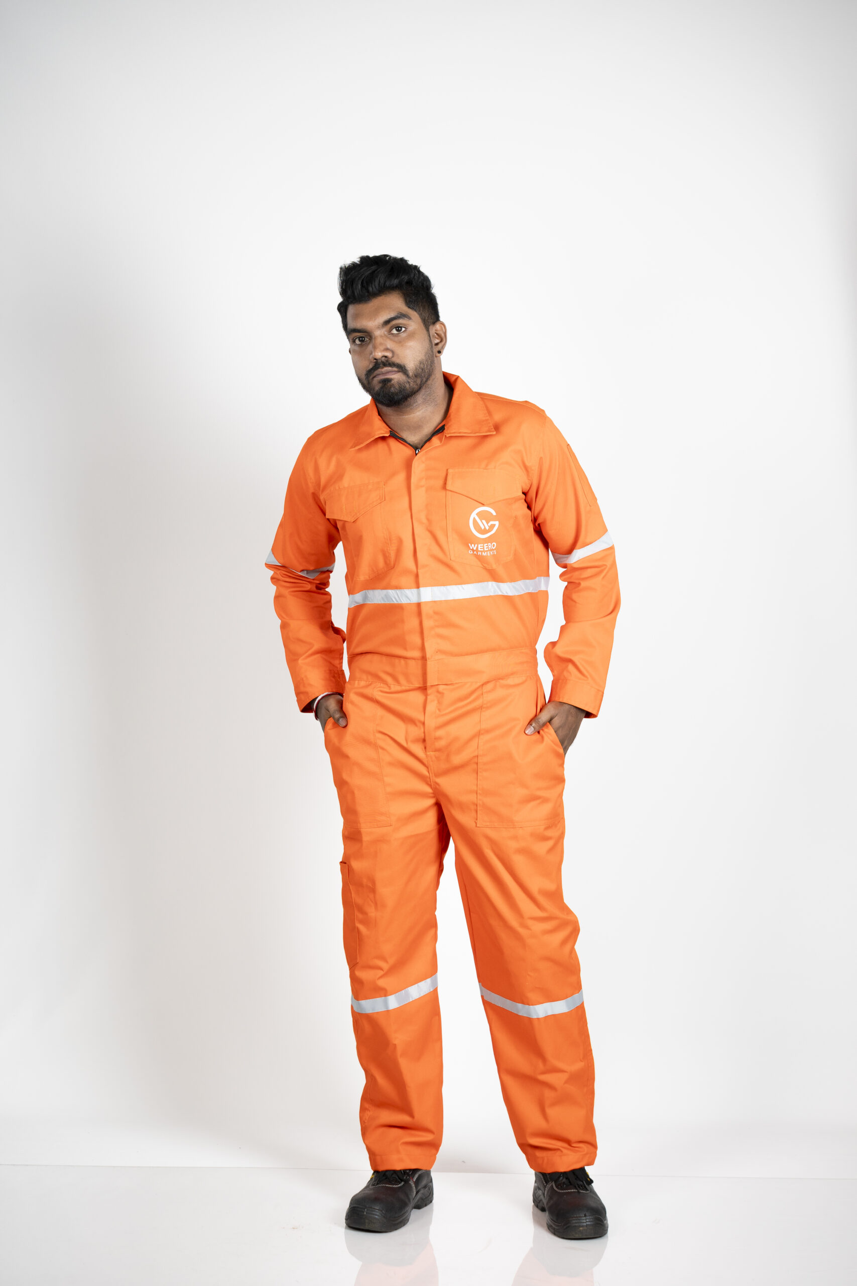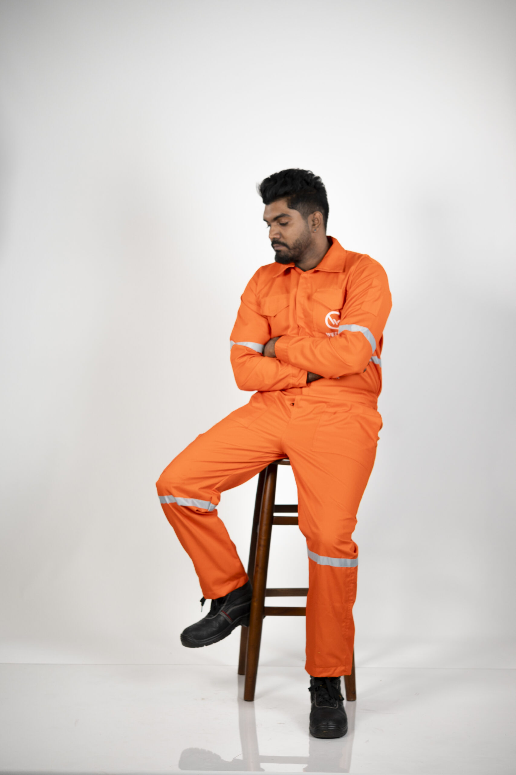 Our Orange Safety Overalls are designed for high-risk work environments, ensuring maximum visibility and safety. The bright orange color makes workers easily noticeable in low-light and high-traffic areas, reducing accident risks. It’s the preferred choice in industries like construction, roadwork, mining, and manufacturing, where visibility is crucial for safety.